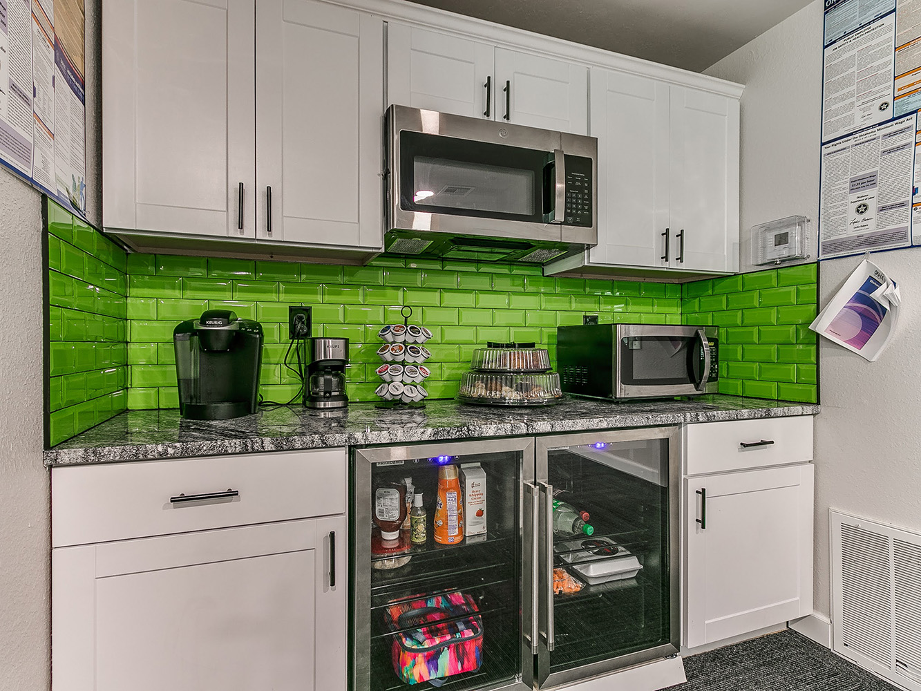 Fuel your day with complimentary coffee, water, and a rotating selection of snacks. The shared kitchen and lounge space is perfect for quick breaks, casual chats, or a moment to recharge between tasks.